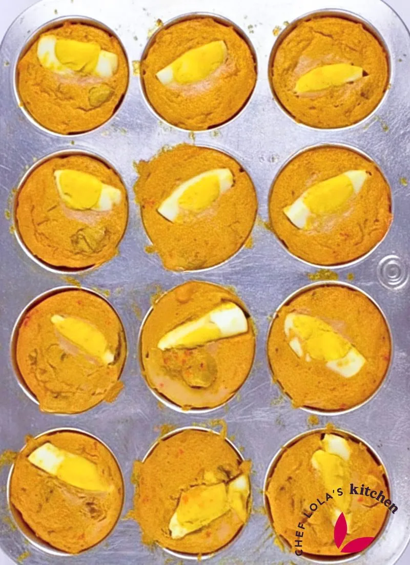 - Mackerel/Eggs: Sliced hard-boiled eggs and fish are extra ingredients. They improve the nutrition of the moi-moi and add texture. You can also use salmon or tuna in place of Mackerel.